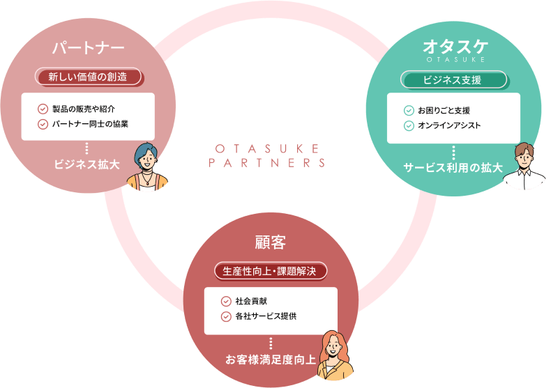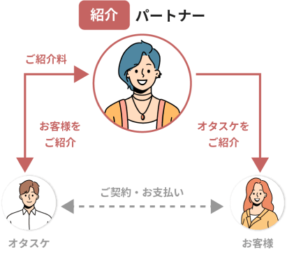 クライアント様へのご紹介はパートナー様、ご紹介以降はオタスケで行います。