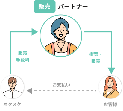 オタスケを必要としているクライアント様に向けて、パートナー様から提案~契約を行っていただく制度です。